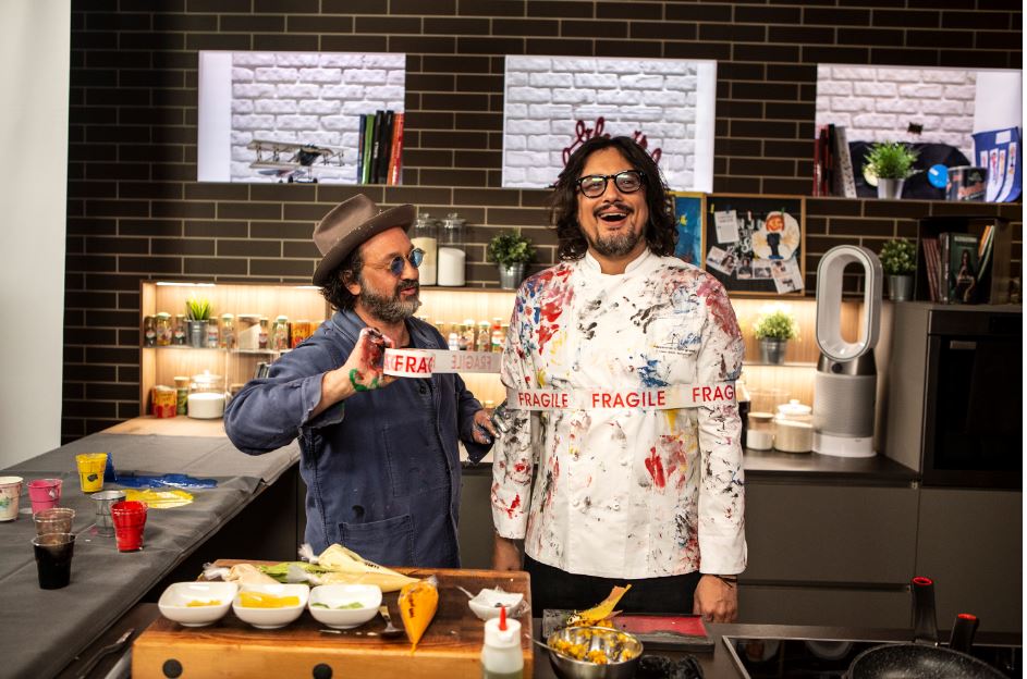 Durante il momento “Food& Art” – moderato per l’occasione dallo speaker di Radio105 Max Brigante – Mr. Brainwash e chef Alessandro Borghese hanno messo in mostra le proprie abilità artistiche, ognuno nel proprio campo, il primo personalizzando a suon di bombolette un grembiule e degli oggetti d’uso comune in cucina, il secondo ai fornelli cucinando uno dei suoi must “la cacio e pepe”.