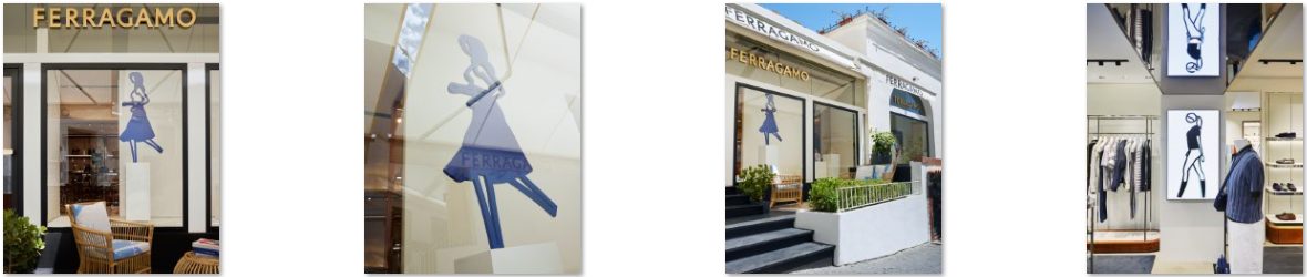 Due opere di Julian Opie sono installate nella boutique Ferragamo di Capri: Tina Walking 2 (2011) e Kiri 1 (2019).