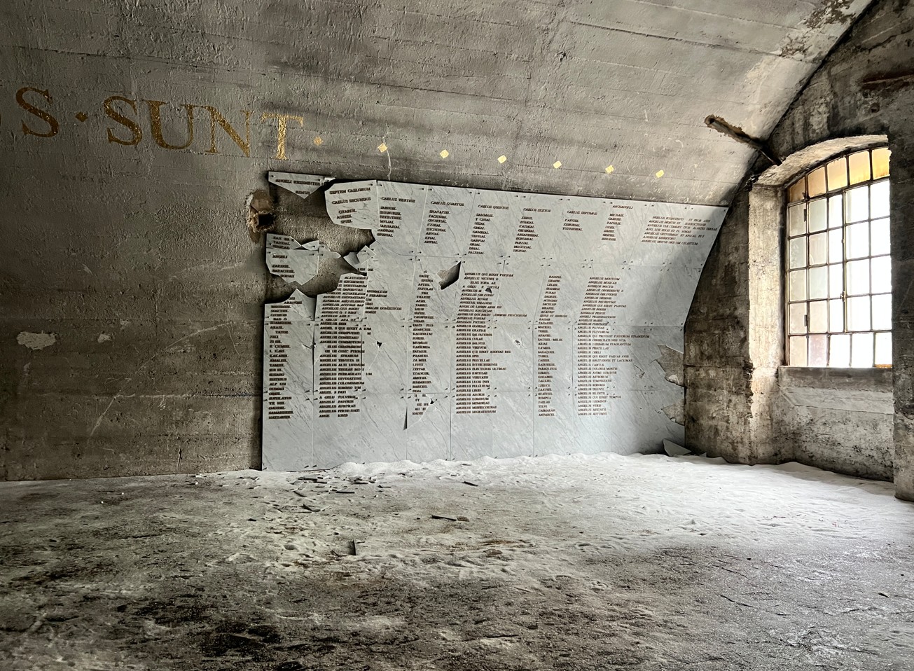 C’è in contemporanea la mostra Es brent! (Brucia!) presso la Galleria Lia Rumma (via Stilicone, 19, zona Cimitero Monumentale Milano) ma qui siamo a Nolo e location non poteva essere più adatta per Gian Maria Tosatti. L’artista torna a Milano, a due anni di distanza dalla personale al Pirelli Hangar Bicocca, con un intervento visionario sul difficile presente, articolato in due mostre che si riflettono l’una nell’altra. Da un lato Paradiso, installazione site specific dal forte approccio simbolico, pensato per gli ex Magazzini Raccordati della Stazione Centrale di Milano – edifici sotto il vincolo della Sovrintendenza Archeologia, Belle Arti e Paesaggio – e prodotto da Eco Contract + Eco Design e Brembo, con il patrocinio del Comune di Milano. Dall’altro Es brent! la prima mostra dell’artista presso la Galleria Lia Rumma di Milano, che presenta opere pittoriche e installative realizzate tra il 2023 e il 2025.