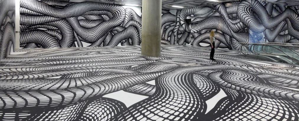 Le stampe digitali su vinile di Peter Kogler hanno conquistato i visitatori di Parigi. La mostra era al Grand Palais e ricapitolava il rapporto tra arte e macchine (Artistes et Robots era infatti il titolo).