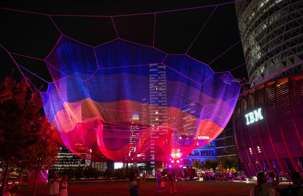 Lo spirito delle opere di Janet Echelman si sposa alla perfezione con la celebrazione di Sky Glass. Modificandosi con il vento e con la luce, le sculture si trasformano dall’essere un oggetto da guardare in un’esperienza in cui perdersi. Le due opere di oltre 30 metri sospese in aria, composte di fibra riciclabili di nylon e politene, con illuminazione colorata, resteranno fino al 25 settembre tra Piazza Gae Aulenti e BAM – Biblioteca degli Alberi Milano.