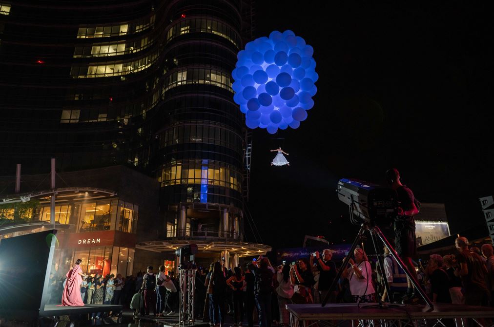 Per il lancio di Sky Glass due opere dell’artista americana JANET ECHELMAN nel cielo di Milano, per la prima volta in Italia in contemporanea.