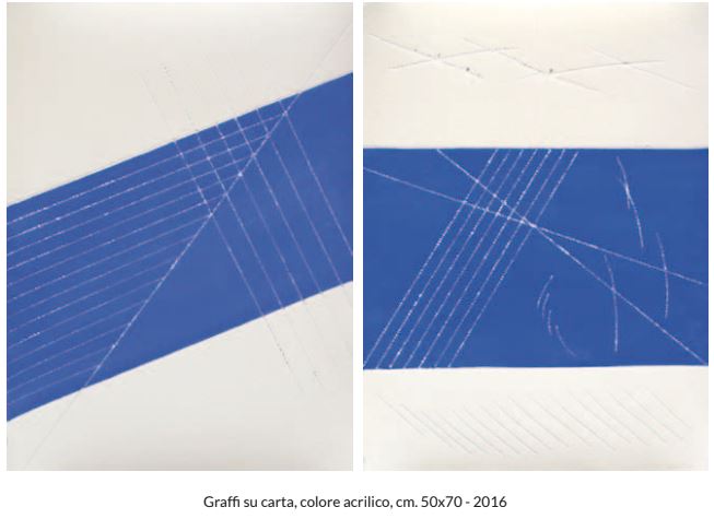 L’artista scrive: “Ho cominciato a esprimermi artisticamente negli anni ’66-67, con opere figurative, ma con una personalità particolare: ho sempre utilizzato fonti bianche o trasparenti su cui tracciavo impronte figurative, sempre evidenziando il segno. Queste impronte erano perciò legate ad
