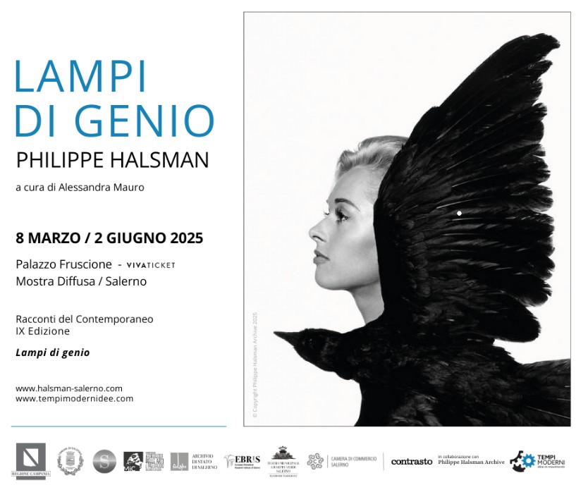 Si intitola “LAMPI DI GENIO” ed è la mostra fotografica diffusa dedicata alla fotografia di Philippe Halsman. L’esposizione, che si terrà dal 8 marzo al 2 giugno a Salerno, intende mettere in dialogo alcuni siti storico-artistici della città antica con l’arte fotografica di uno tra i più originali ritrattisti del Novecento. Dopo il successo dello scorso anno a Palazzo Reale di Milano, gli scatti di Halsman arrivano a Salerno con una mostra organizzata dall’Associazione Tempi Moderni e curata da Alessandra Mauro in collaborazione con Contrasto e l’Archivio Halsman di New York.