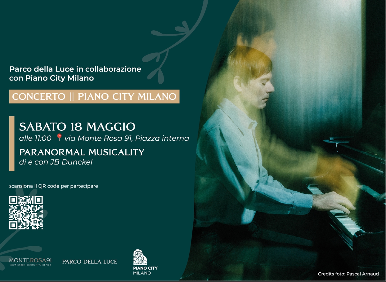 Nel palinsesto di eventi culturali di Parco della Luce entra Piano City Milano, il festival diffuso che dal 2011 fa risuonare concerti di solo pianoforte in spazi milanesi non convenzionali. Per l’edizione di quest’anno, che si svolge dal 17 al 19 maggio 2024, Monte Rosa 91 accoglie l’artista internazionale JB Dunckel e il suo nuovo album, “Paranormal Musicality”: l’appuntamento è per sabato 18 maggio alle ore 11:00 nella Piazza interna.