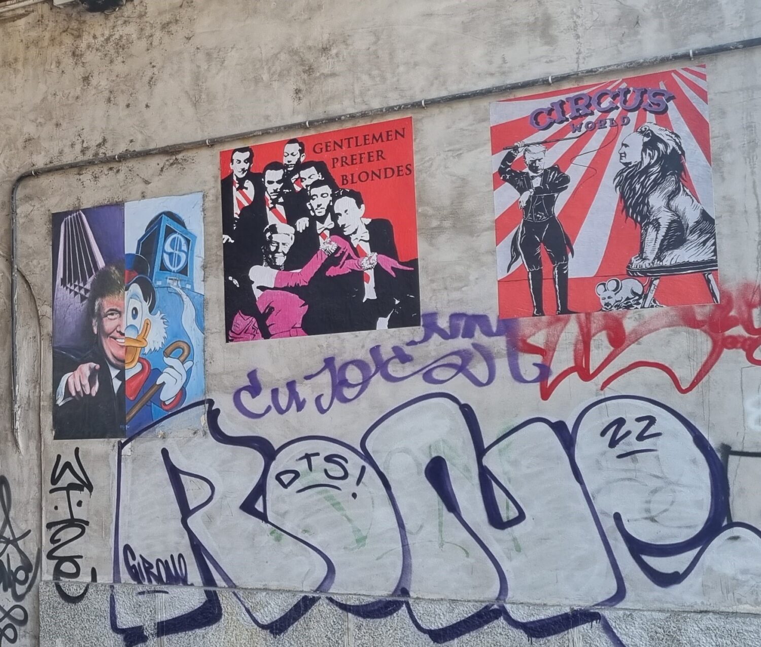 Sia in V.le Monza, sotto uno dei due ponti della ferrovia altezza Metro 1 Rovereto, nell’ormai famosa e conosciutissima “Saga Trump”, la carrellata di opere che Rigaff ha voluto dedicare alle vicende che hanno caratterizzato il percorso politico di Trump.