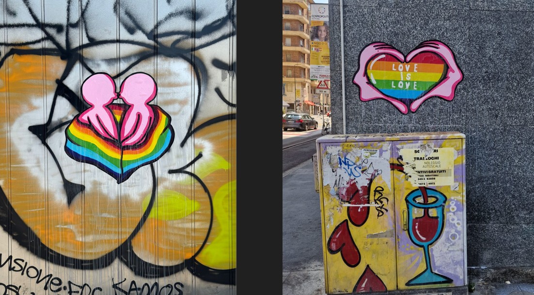 L’opera nuova di Rigaff in occasione del Milano Pride 2025 trova collocazione come street art sia in Via Melchiorre Gioia all’altezza dell’incrocio con V.le Monte Grappa, proprio lungo il percorso del corteo del Pride del 28 giugno.