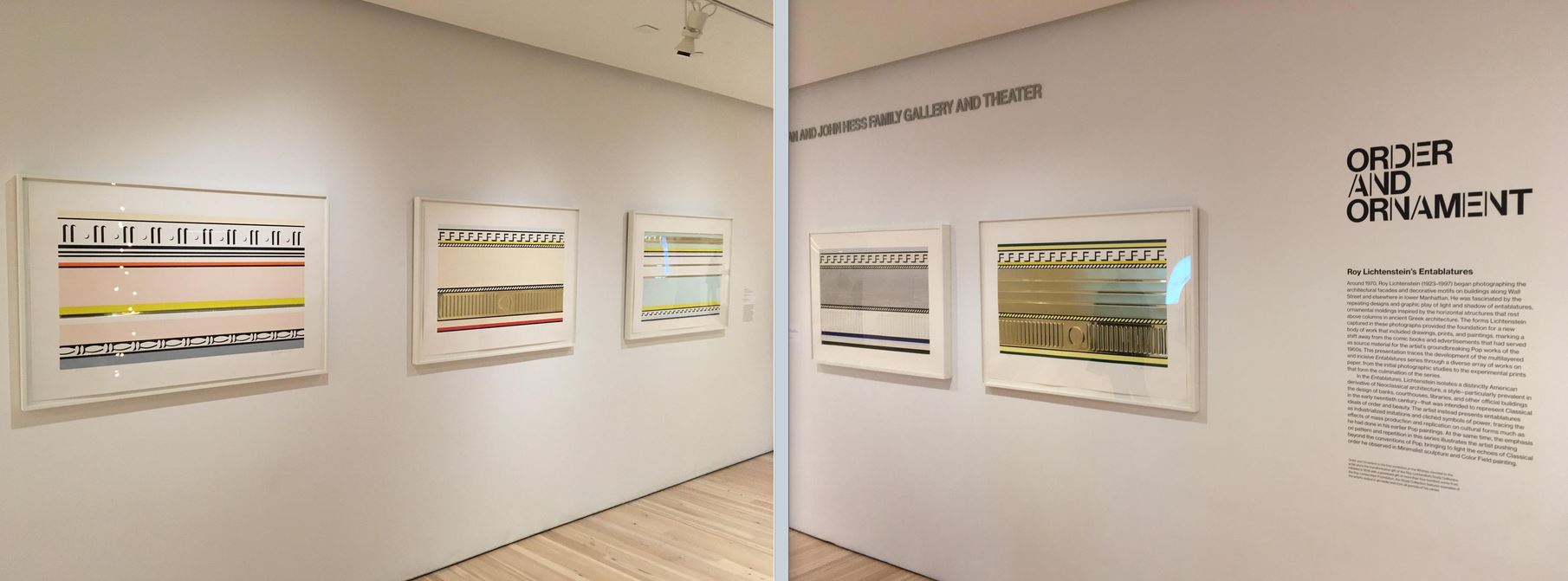 Prendendo il nome dalle strutture orizzontali che si trovano in cima alle colonne dell’architettura greca classica, le Entablature di Lichtenstein rappresentano un derivato distintamente americano, basato su imitazioni architettoniche rinascimentali e industrializzate che furono costruite in massa all’inizio del XX secolo.