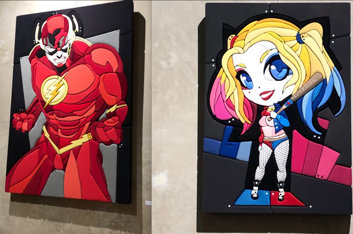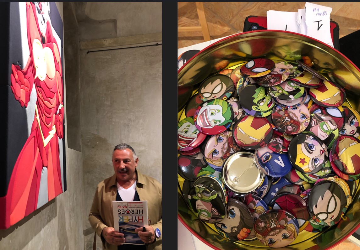 Il Capo della Mostra, la figura più grande resa a scultura che vigila adirata al senso della vita quasi come volersi riprendere il tempo perduto. Il vero gioco si posa su un cambio di direzione inaspettato, dove l’anima di un fumetto romantico come quello uscito dal cappello di Gardner Fox e dalle mani del disegnatore Harry Lampert nel 1940, vuole riprendersi tutto. Proprio lui che, abituato a vivere ad una velocità IPER sonica si vede essere l’unico rimasto vecchio, paradossalmente a sorvegliare una scolaresca di bambini, che a differenza sua, sono tornati a giocare con sé stessi. Se vi abbandonate alle immagini, lasciatevi disorientare dai concetti, cedete gli occhi a ciò che non va spiegato perché è bello che l’Arte possa esprimersi, prima di tutto, secondo una “non logica” che ha una logica: si chiamano idee, e le idee devono essere necessariamente frutto di un pensiero rispettabile e rispettato, un pensiero che sa generare una storia da raccontare. Ognuno uscirà con una opinione e forse un proposito, perché nella vita di ognuno di noi, tutti possiamo ambire ad essere promossi da “super” ad “iper”. Si lascia a voi la conclusione della storia con un suggerimento: forse non importa a quale velocità decidiate di correre, forse l’importante è capire che ogni viaggio lascia un senso profondo, ed anche in questo, forse, ognuno ha avuto la possibilità di iniziare ad essere un super eroe per la propria vita e un iper eroe per la vita degli altri.