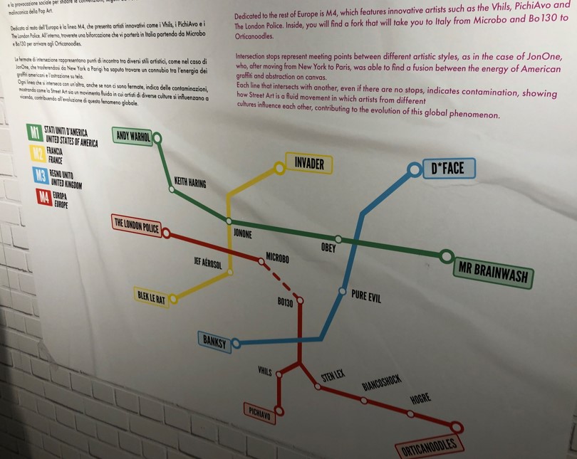 Le vie della street art, egregiamente illustrate a effetto nei pannelli informativi della mostra a Parma. Si parte dalla Pop Art per arrivare all’arte urbana italiana, anch’essa ricca di spunti e talenti diversi, come Hogre e Orticanoodles.