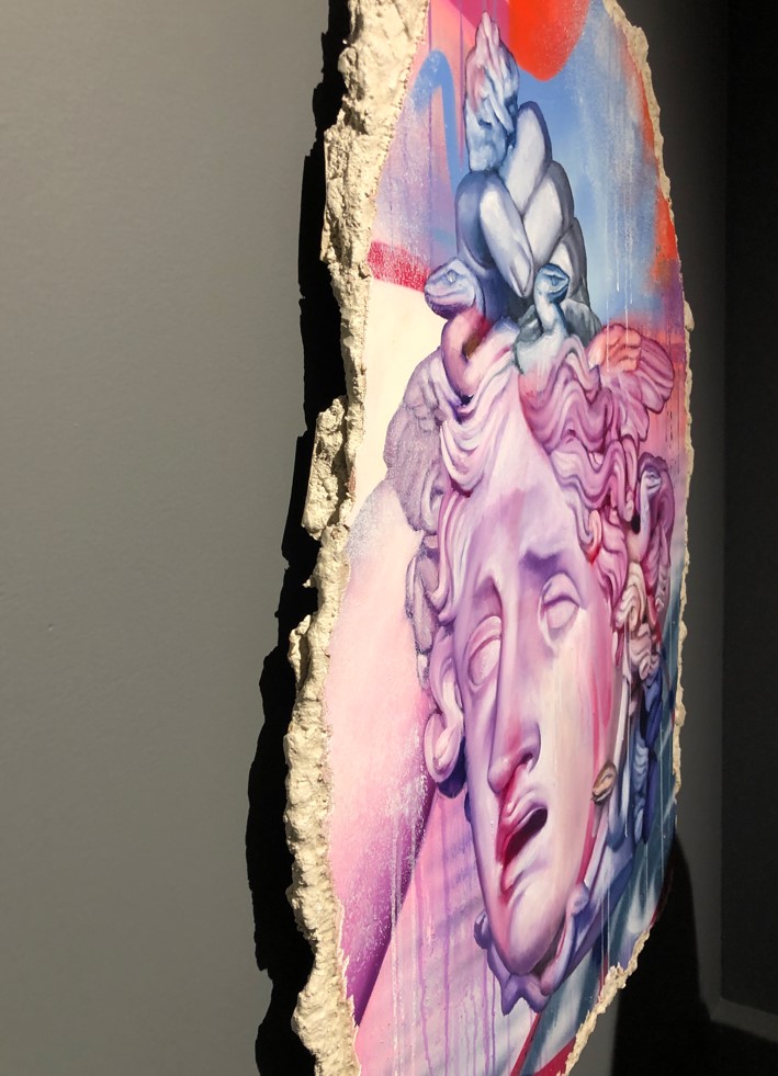 Un lavoro di PichiAvo del 2023: “Perseus and Medusa Diaspasis B”, spray, acrulico e olio su muro (pesa cinque chili).