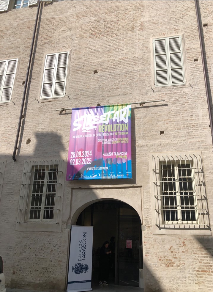 Edificio di grande valore storico costruito nel XVI secolo, Palazzo Tarasconi a Parma è oggi riconosciuto come centro d’arte e cultura. Nelle sue viscere in uno scenario suggestivo ospita fino a marzo 2025 la mostra “Street art revolution”.“Street Art Revolution – da Warhol a Banksy: la (vera) storia dell’Arte Urbana“ 28/09/2024 – 02/03/2025 Palazzo Tarasconi, Parma. Direttore Artistico: Luca Bravo. Curatore: Giuseppe Pizzuto. Il palazzo dove ha sede la mostra è un edificio cinquecentesco sorto sulle vecchie mura alto medievali della città di Parma.
