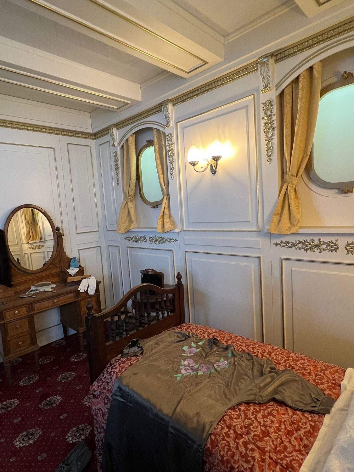 Splendida la selezione dei raffinati arredi delle camere, esemplari anche nella terza classe. Fondamentali per comprendere la perfetta estetica di questo Grand Hotel galleggiante, ma anche la moda dell’epoca: rappresentata proprio come indossata dalle signore sul Titanic e sapientemente ricostruita nel film di James Cameron del quale, in collezione, si ammirano accessori e oggetti di scena. Immancabile una delle copie usate nel film del “Cuore dell’oceano”, indimenticabile gioiello della protagonista Rose. Presente anche una selezione di scarpe e accessori della stessa protagonista e altri personaggi (come la t-shirt bianca di Leonardo DiCaprio/Jack) e altro merchandising. Di struggente intensità, anche i tanti reperti che illustrano storie intime e personali. Fra le lettere, quella di Thomas Andrews, capo progettista a bordo nel viaggio inaugurale, scritta alla moglie e alla sua bambina.