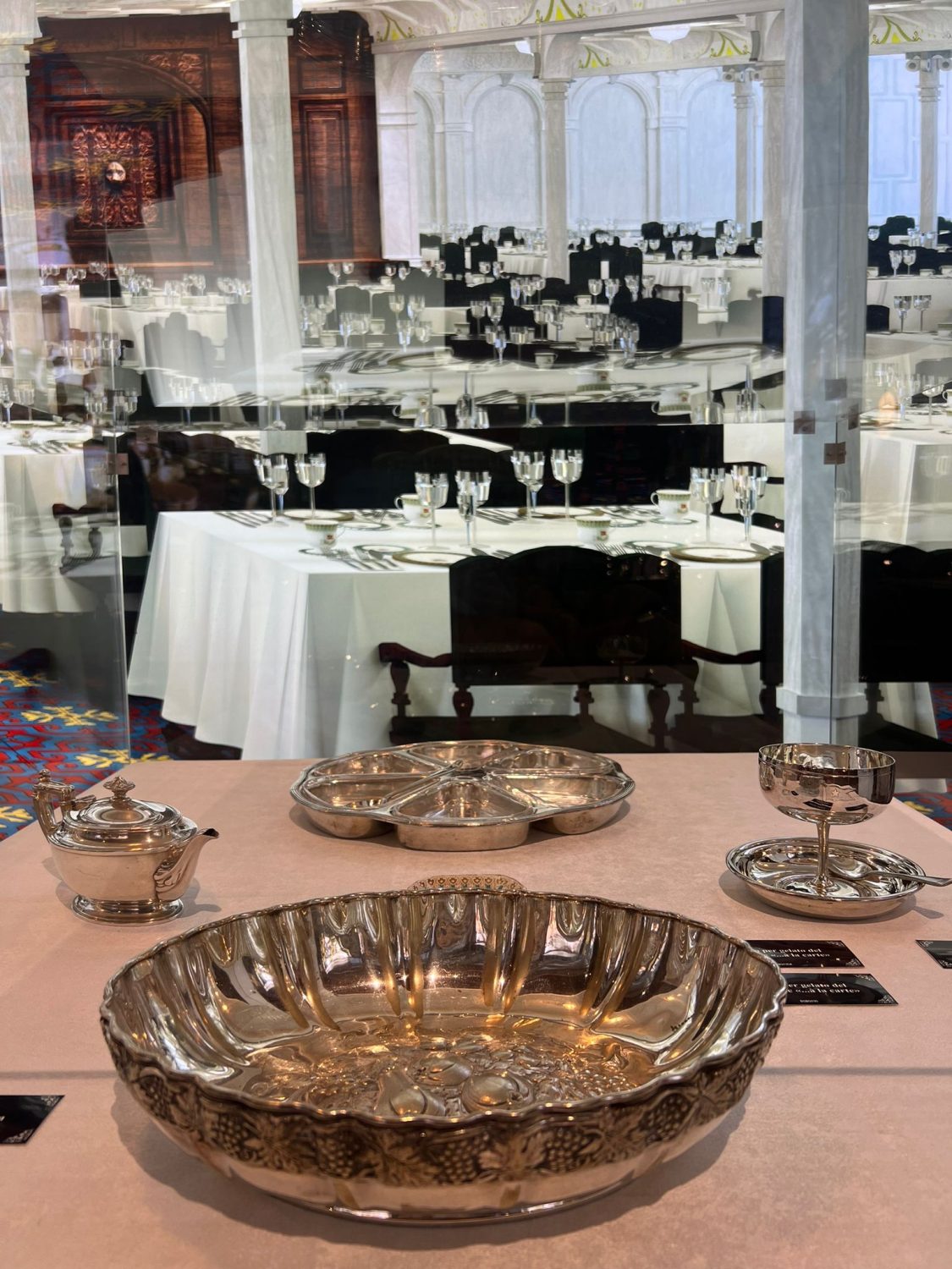 Seguono preziose suppellettili delle sale da pranzo e parti del relitto individuate dalla Nave Minia che, incaricata di trovare i dispersi, recuperò molte parti di legno degli arredi, compresi gli scalini dello Scalone centrale.