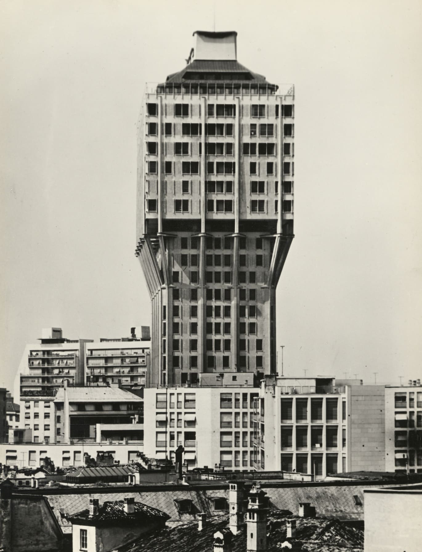 Il meticoloso lavoro di catalogazione e studio portato avanti dal Centro Archivi del MAXXI Architettura – reso possibile grazie al comodato d’uso dell’archivio BBPR – mette in luce, dettaglio per dettaglio, la storia di un edificio simbolo dell’architettura italiana degli anni ‘50. I veri protagonisti sono infatti i materiali d’archivio: una ricchissima collezione di fotografie, migliaia di elaborati grafici e documenti che ripercorrono le tappe della Torre Velasca, dalle fasi iniziali alla lettera di incarico, dagli studi preliminari per torri che non sarebbero mai nate all’inizio del cantiere, fino allo studio degli interni e i particolari degli arredi.