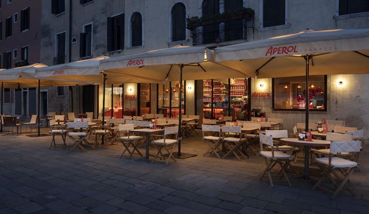 Un rito antico in un posto magico: a Venezia è stata rilanciata la terrazza Aperol grazie a un egregio restyling.