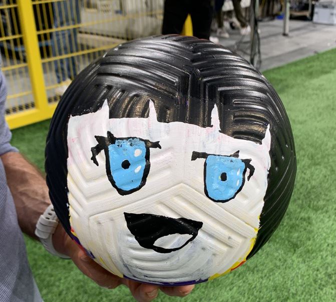 E così mentre all’interno del rettangolo verde le stelle del grande calcio, di ieri e di oggi, si sono sfidate in due tempi da 35 minuti ciascuno, nello stesso lasso di tempo i tre artisti a bordo campo hanno personalizzato, a colpi di colore, tre palloni della Lega Serie A, che verranno adesso collocati in preziose teche create da Gain Custom (@gain_custom) • Foto e video di Instagram) in attesa di essere messi all’asta.