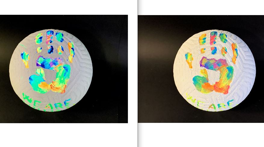 «Sono tre gli elementi che ho voluto rendere centrali nel mio lavoro» sottolinea Mr. Savethewall. «Il primo è la discriminazione paralizzante, rappresentata con una grigia coltre di cemento. Il secondo è l’integrazione vivificante, foriera di progresso ed energia, che trova invece espressione nel colore. Il terzo è la sfera rassicurante, simbolo della perfezione naturale. Il valore dell’integrazione vive idealmente dentro la sfera e spinge con forza fino a sgretolare il cemento, lasciando un’impronta indelebile, che può essere di una mano bianca, nera, gialla o rossa, senza mai cambiare. Impronte sempre uguali perché, al di sopra di tutto, WE ARE HUMAN!».