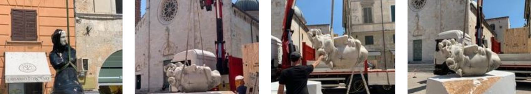 La piazza del Duomo, la Chiesa di Sant’Agostino e il suo Chiostro: da oggi, sabato 27 giugno 2020 i più suggestivi spazi pubblici della città di Pietrasanta saranno “abitati” dalle opere monumentali dello scultore Fabio Viale (Cuneo 1975).