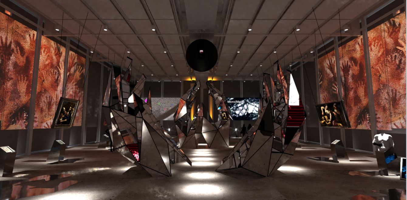 Si parte da due grandi installazioni centrali: le mani chiuse, emblema della riflessione sulla propria origine e interiorità, e quelle aperte, che rappresentano invece l’esplorazione e la conoscenza del mondo circostante. Le mani, come grandi origami specchianti, sono un gioco di simmetria e sono sviluppate a partire dalla digitalizzazione della mano destra del fondatore Marino Golinelli: al termine della mostra, resteranno esposte all’Opificio come simbolo del cammino da lui impresso alla Fondazione, un cammino che, partendo dal passato, possa aprirsi a quel futuro che appartiene alle giovani generazioni.