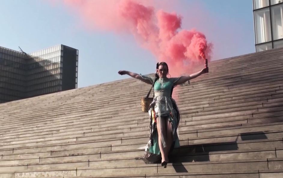 “La visione poetica è rinascita, libertà e coraggio” sostiene Angelique Cavallari, che non smette di immergersi in nuove dimensioni creative. Esploratrice assidua di nuove visioni e libera dagli schemi, l’artista e attrice riprende con le sue Street Performance itineranti (dopo la performance “L’effimero e il grano” per le strade del Marais di Parigi – accompagnata dal polistrumentista Nicola Linfante – in occasione dei “Parcours Nomades”, ma anche “Identità” presentato al Lady Fest di Roma). Nonostante il periodo di restrizioni sociali, con l’atto performativo “ribelle”, l’artista tra sogno e surrealismo, si presenta vestita con un abito che “evoca metaforicamente una Fenice contemporanea” (fatto da lei stessa a mano) e mentre cammina con una mano sparge petali di fiori freschi (prese da un cesto di vimini) per le strade di cemento e con l’altra tiene alto un fumogeno colorato. Un contrasto scenico che diventa mistico e surreale, onirico, ma che è concreto e tangibile. Tangibile come la presenza dell’artista.