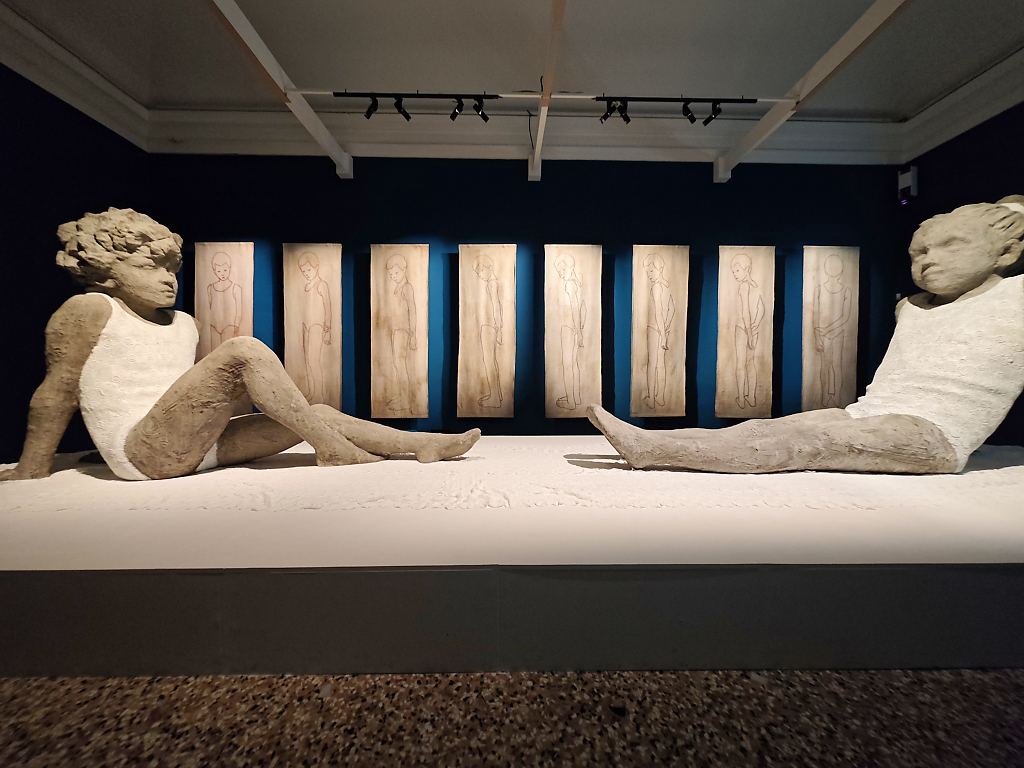 I bambini di Berruti, con i loro gesti minimi e ripetuti, richiamano alla mente certe atmosfere kafkiane — il senso di attesa indefinita, di passaggio sospeso, di un futuro che non arriva mai del tutto. Allo stesso tempo, evocano l’“eterno fanciullo” di Rilke, simbolo di un’innocenza che resiste al tempo e custodisce un sapere nascosto. Sono figure che ci osservano con muta intensità, come se volessero ricordarci, con la loro semplice presenza, che il domani resta un terreno fragile ma possibile.
