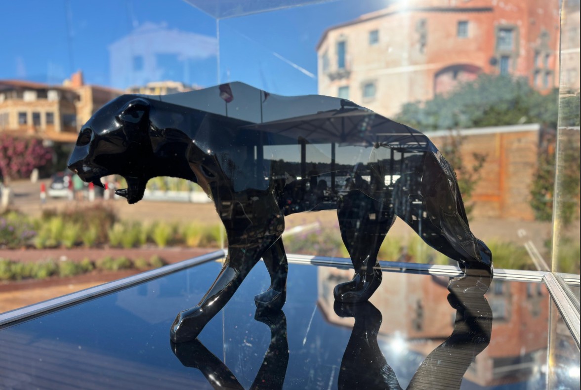 una scultura in resina (dimensioni: 95 x 42 x 21 cm) che raffigura proprio una pantera nera, emblema della forza e dell’eleganza che contraddistinguono lo stile dell’artista, noto per le sue opere pop e monumentali che coniugano arte e design.