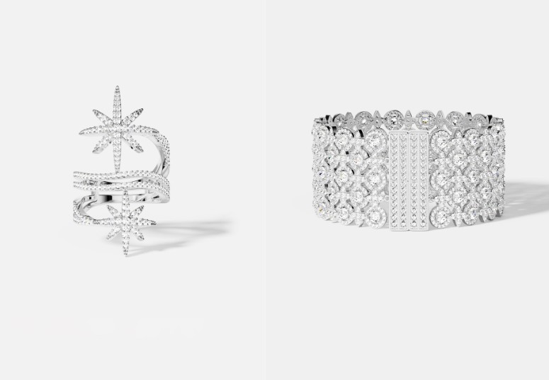 I pezzi si distinguono per i loro motivi celesti, tra cui stelle e shapes ispirate ai meteoriti, simboli di
