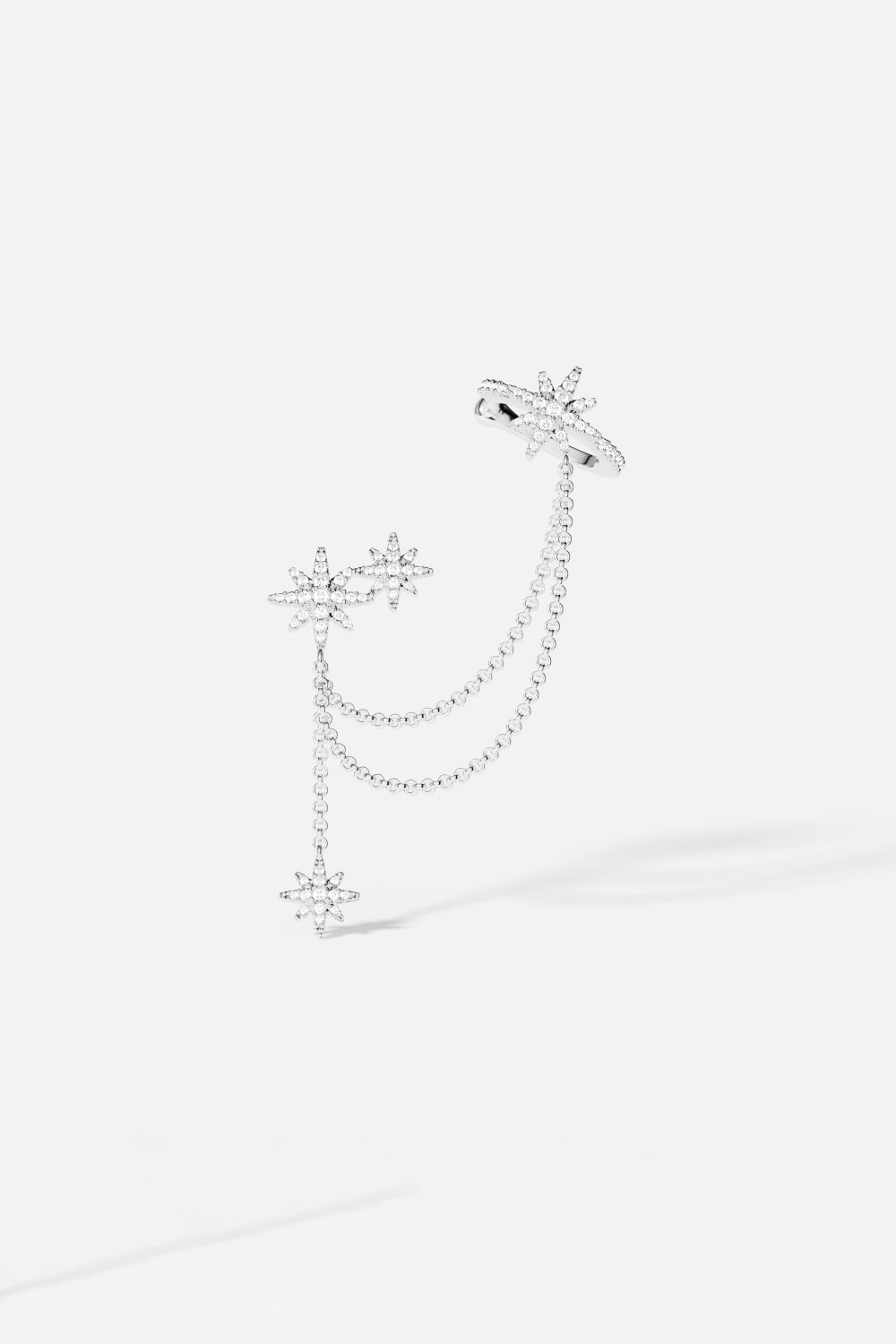 Tra le creazioni più iconiche, spicca il bracciale Double Météorites, caratterizzato da un design elegante e radioso. Questo delicato bracciale presenta due ciondoli a forma di stella tempestati di zirconi, per un tocco moderno e alla moda, perfetto per essere indossato ogni giorno.