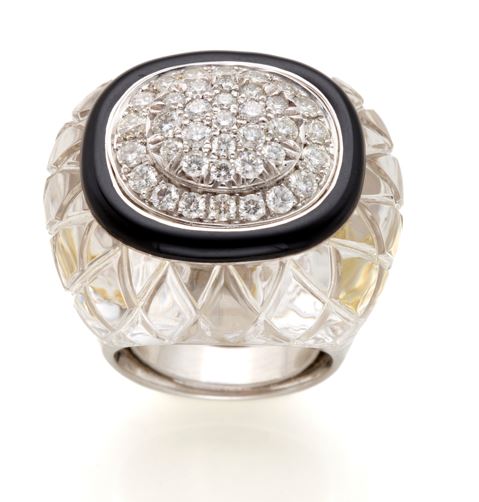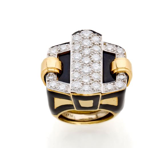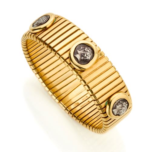 Nella sessione dedicata ai gioielli, la varietà è il leitmotiv dominante per andare incontro alla domanda in costante crescita diacquirenti privati e non. Una selezione di lotti firmati David Webb provenienti da una collezione privata e composta da vari anelli, in oro giallodecorati con diamantie smalti, e un sautoir è affiancata da una serie di preziosi firmati Bulgari, tra i quali spiccano un bracciale Tubogas collezione Monete, fine anni 80, con monete in argento Gallia Massalia, un pendente Pyramid in topazio con collana, orecchini della collezione Nuvola, vari anelli e un open bangle in oro giallo e acciaio. Accanto a gioielli di firma come Van Cleef & Arpels, Buccellati, Cartier, Pomellato, Sabbadini e Faraone; gioielli di nicchia come una parure Parure Frascarolo in oro giallo, smalti e diamanti a tema animalier, composta da sautoir, bracciale convertibile in spilla o pendente, accendino e porta rossetto. Tra gli altri gioielli in asta, spiccano un anello con diamante taglio smeraldo Fancy Yellowdi 6,79 ct.(certificato GIA) e un anello con diamante taglio ovale da 4,23 ct.