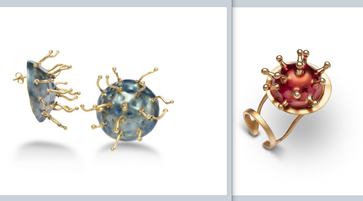 Ma la natura reagisce alla nostra incuria e si adatta per sopravvivere, come fanno i batteri mangia plastica, di recente scoperta, che Gianni De Benedittis ha subito riprodotto in gioielli nella capsule collection BACTERIUM, dove piccole sfere di argento con bagno in oro, realizzate sempre con la tecnica della microfusione e l’uso di smalti colorati, si agglomerano o gemmano in accattivanti peduncoli e bastoncelli, divenendo anelli e bracciali, oppure pendenti e orecchini.