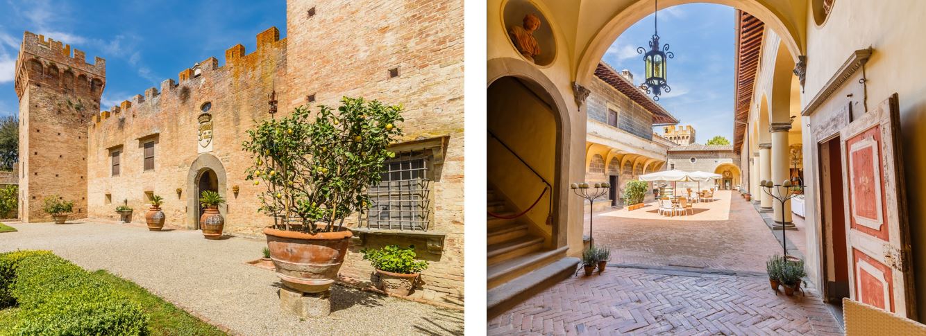 In foto d’apertura e qui sopra: Toscana, in vendita il castello del Brunelleschi. Progettato dal celebre architetto durante i primi anni della costruzione della Cupola del Duomo di Firenze (1424). Vi soggiornarono tre Papi: Leone X e Clemente VII e Paolo III Farnese. La proprietà comprende oltre al castello, 25 case coloniche e un borgo con una villa settecentesca per un totale di 35 mila mq di interni e 1.200 ettari di terreni.