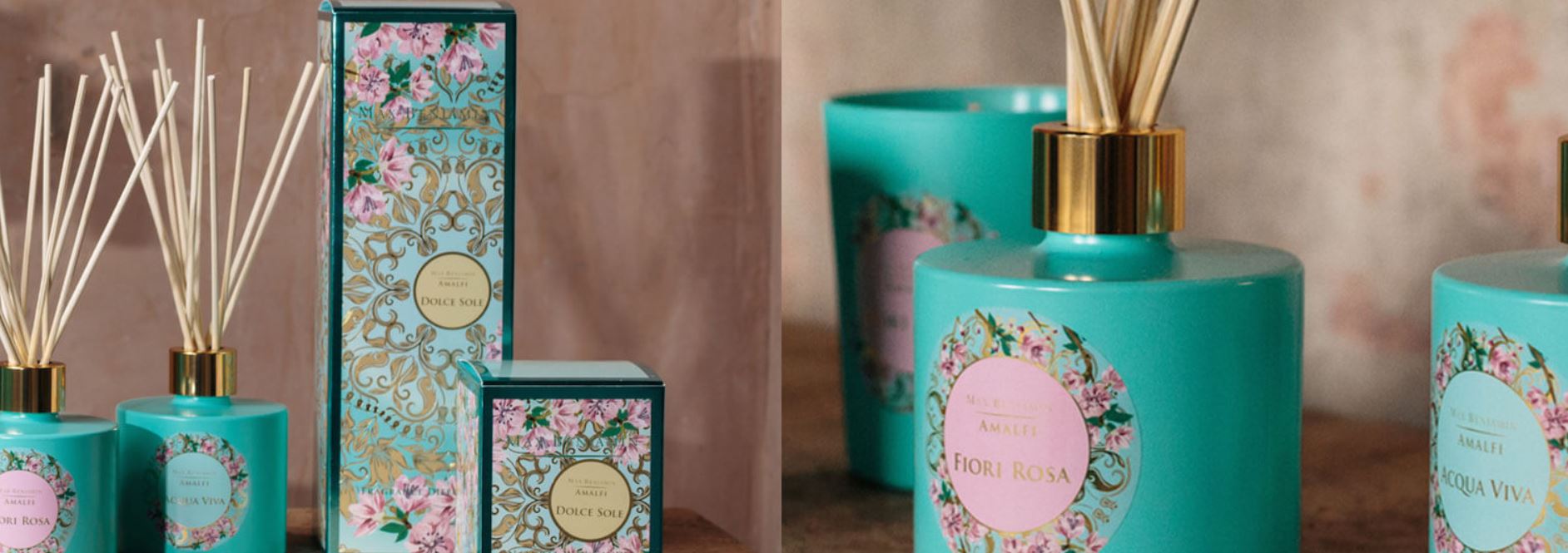 AMALFI COLLECTION – Ci sono anche collezioni complete di profumi da diffondere negli ambienti con una filosofia unica di fondo. Come l’Amalfi Collection, tutta ispirata dalla costa più bella del mondo, quella che da Positano passa per Capri e approda ad Amalfi. Tutti i colori e i profumi dell’area campana sono messi a frutto nella realizzazione della linea: i limoni e tutti gli agrumi, i fiori selvatici, l’aria del mare.