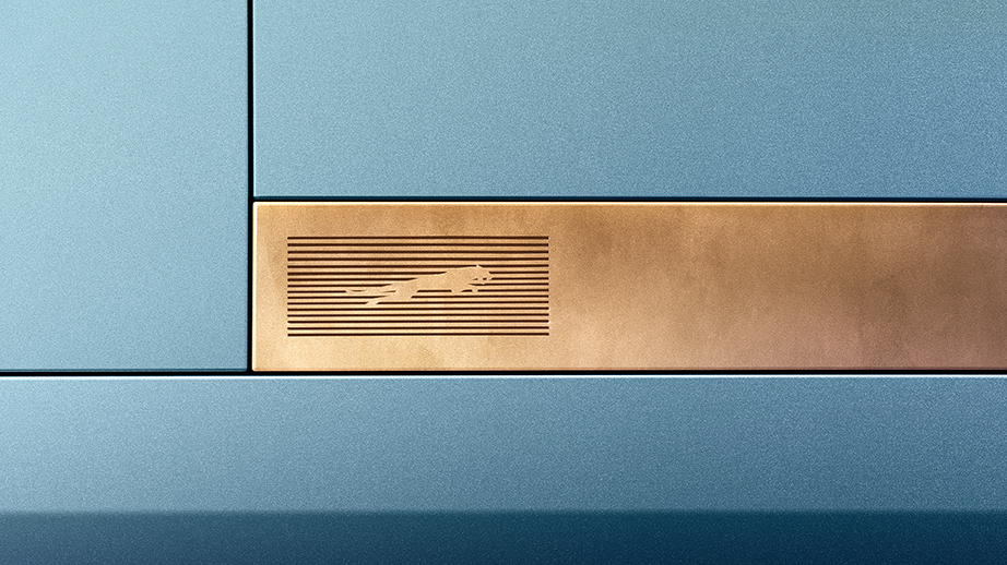 Il profilo laterale è dominato da proporzioni audaci, con il Jaguar “leaper” inciso al laser in un lingotto di ottone rifinito a mano su ciascun lato della vettura. Questi lingotti si aprono in modo scenografico per rivelare le telecamere posteriori che rimangono invisibili fino a quando non diventano necessarie.