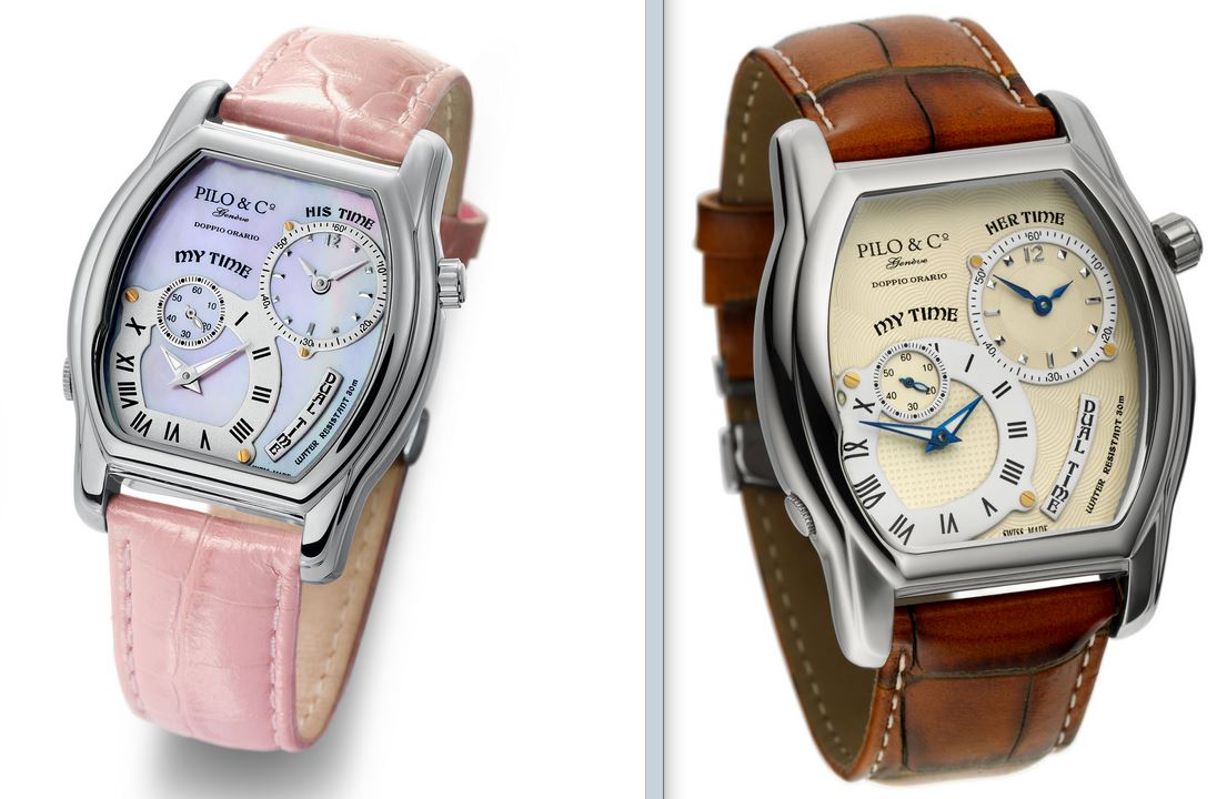 Doppio quadrante – Con un doppio quadrante e il gioco di parole “My Time – His Time/Her Time”, è l’orologio perfetto per portare al polso la persona amata. Pensato soprattutto per chi è in costante movimento e in viaggio e vuole portare sempre con sé chi ama, questi orologi sono un’idea sofistica e originale per un San Valentino pieno di romanticismo. Sul quadrante si possono impostare due orari diversi per avere sempre sott’occhio il proprio e quello dell’amato, ancor più se ad un fuso diverso.