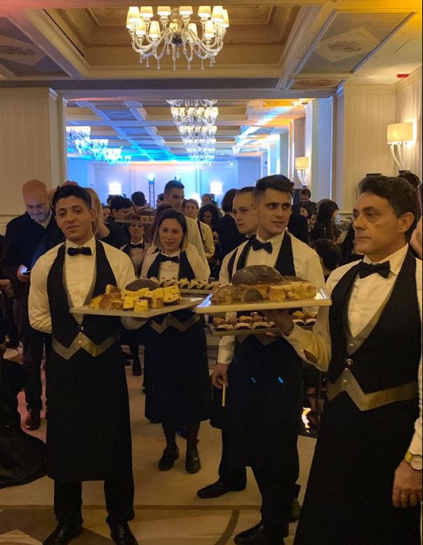 Una festa elegante e originale, con un’animazione soft, moderna ma non eccessiva, il catering curato dallo Chef di casa Fabrizio Casadei, che ha preparato per l’occasione una cena con specialità tutte italiane, risotto al pomodoro, pasta alla gricia, ravioli, polenta e moscardini, maialino al forno, agnello, sushi di tonno, crudo di gamberi. Bollicine Ferrari e cocktails in accompagnamento. Il tutto completato da un servizio eccellente, professionale e di gente con il sorriso.