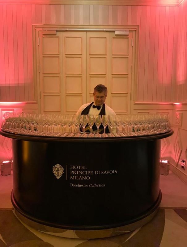 Ezio Indiani, direttore dell’hotel Principe di Savoia, ha fatto gli onori di casa tutta la sera, rilasciando brevi interviste e aprendo la serata con un breve discorso di benvenuto. “Nell’intento di restare fedeli al forte legame col territorio che ci contraddistingue – ha detto – abbiamo scelto di collaborare con le piccole e medie imprese del tessuto economico locale, coinvolgendo imprenditori e artigiani attivi in Lombardia e nelle regioni limitrofe”.