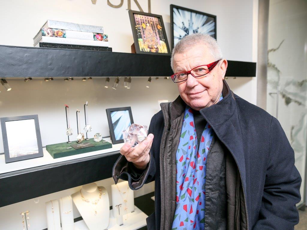 Una replica in scala della Swarovski Star è esposta anche nel Rockefeller Center, consentendo ai visitatori di ammirare gli intricati dettagli e la precisione artigianale per cui Swarovski è famosa. La Stella era accompagnata da un pop-up al dettaglio dove è stata scattata questa foto del grande architetto che mostra alcuni pezzi da una collezione di ornamenti disegnati dallo stesso Libeskind.