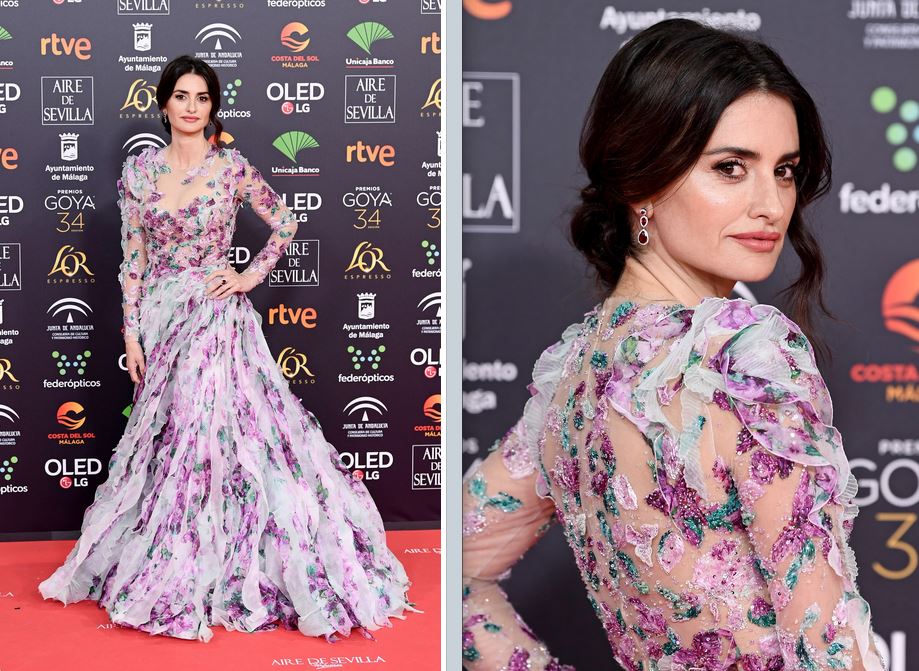 Penélope Cruz ha indossato i gioielli della collezione Lola di Atelier Swarovski by Penélope Cruz Fine Jewelry. Orecchini Tear Drop e anello realizzati in oro bianco 18kt, con rubini sintetici circondati da diamanti creati in laboratorio.