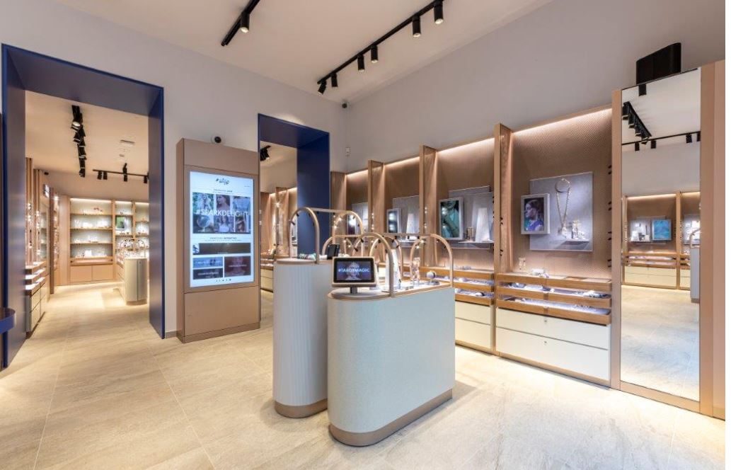 Basato sull’idea del Crystal Studio, concepito come un ambiente dinamico e creativo, il nuovo Store Concept di Swarovski eleva l’atmosfera in-store offrendo un’esperienza memorabile, altamente interattiva e social. Ricco di elementi riconducibili all’iconico DNA di Swarovski, tra cui glamour, esperienza e innovazione, il Crystal Studio colloca il cliente e le sue esigenze specifiche al centro dell’esperienza, incoraggiando sperimentazione, creatività e spontaneità. I touch point digitali interattivi dell’intero store puntano non solo a migliorare il processo di acquisto, ma anche a creare uno spazio accogliente, permettendo ai clienti di immergersi nello scintillante mondo di Swarovski. Il nuovo Store Concept offre un’estetica di alto livello, che esprime l’essenza del brand in ogni suo aspetto. Materiali e colori giocano un ruolo fondamentale nel design, con una scelta di materie prime che richiama l’atmosfera di uno “studio”, con un immediato contrasto creato da una palette cromatica calda e incantevole. Sul pavimento piastrellato in porcellana grigia, gli espositori si presentano come vetrine aperte e modulari definite da una rete metallica in una raffinata tonalità oro rosa, garantendo una maggiore enfasi all’esposizione del prodotto.
