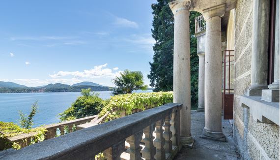Il complesso immobiliare, incorniciato da un parco di 12.000 mq composto per la maggior parte da piante secolari e impreziosito dalla presenza di ruscelli spontanei, comprende due spiagge private di 260 mq e tre architetture con un affaccio mozzafiato sul Lago Maggiore: il castello, la dependance e un cottage di 120 mq.