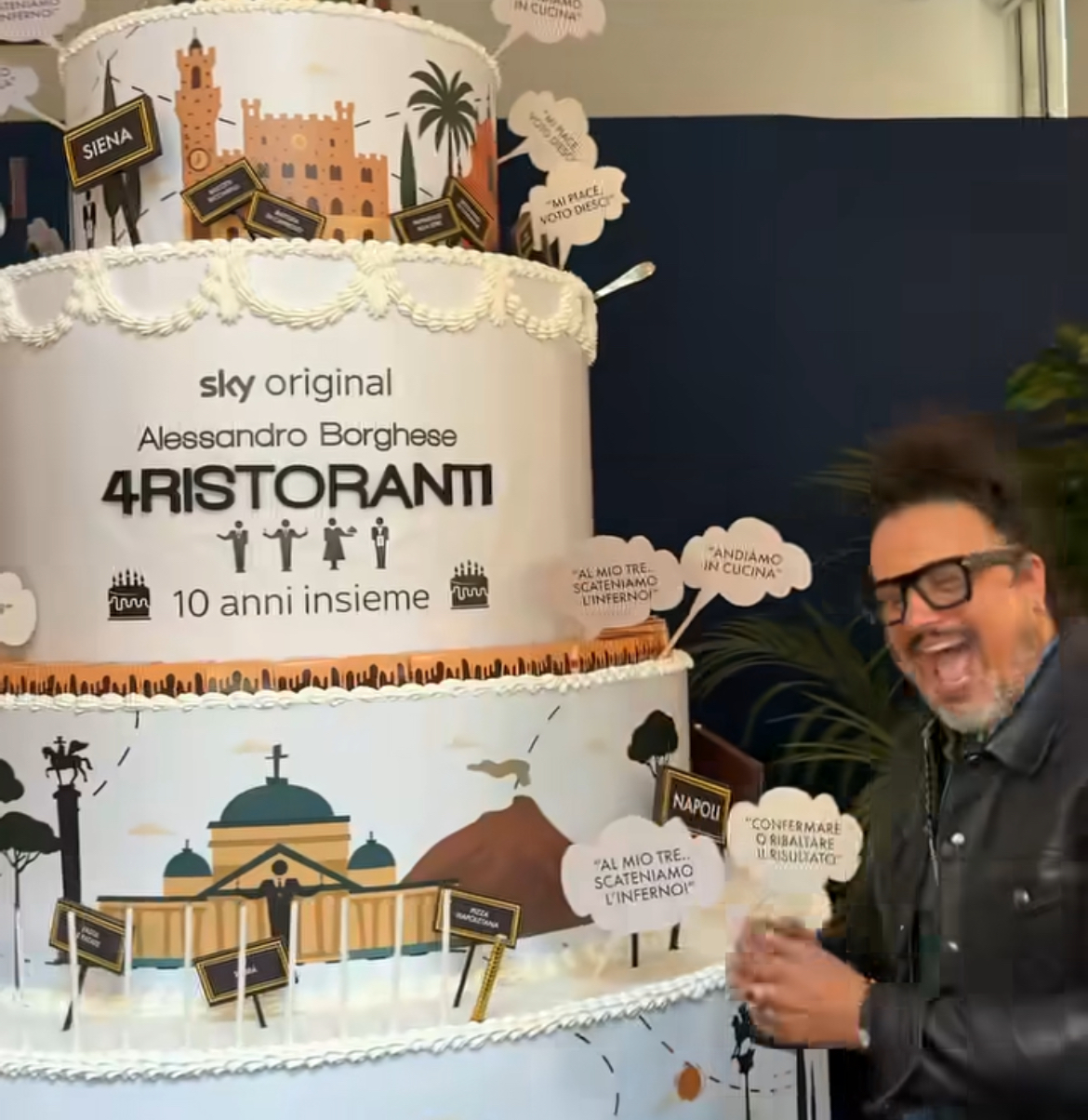 C’è stato un momento in cui Alessandro Borghese, tra i più celebri chef in tv in Italia, ha iniziato a farsi largo nel mondo della tv. E quel momento che ci sembra quasi incredibile, data la sua popolarità ubiqua in questi tempi, era esattamente dieci anni fa, quando partiva il format “4 Ristoranti”. E per celebrare quegli inizi, Sky e Now mandano in onda da questa settimana due speciali del programma. Il primo, dedicato a Roma e le sue location culinarie iconiche, ha avuto la presenza dell’amico comico di Borghese, Lillo.