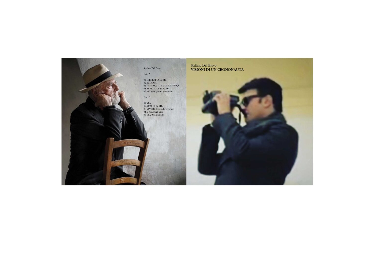 «”Visioni di un crononauta” è un progetto che ha avuto una lunga gestazione e ha una veste molto importante: la copertina è infatti una fotografia specchiante di Michelangelo Pistoletto che in questa sua performance-cameo siede sulla Sedia del Viaggiatore. Quest’ultima compariva sulla copertina dell’album di Claudio Baglioni “Viaggiatore sulla Coda del Tempo” ed è l’unico oggetto che il cantautore ha messo all’asta nella sua carriera. Io riuscii ad aggiudicarmela ad un’asta di Amnesty International nel 2003. Questa sedia è un ponte elevatoio tra il passato, il presente e il futuro» – racconta Stefano Del Bravo.