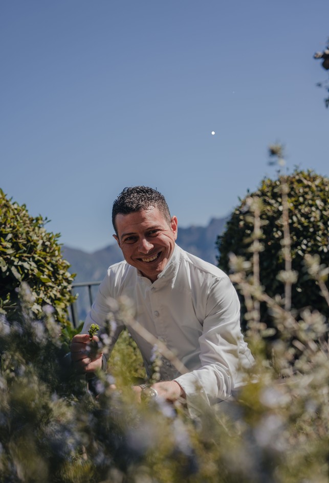 Un appuntamento, quello del 6 settembre, in cui si giocherà abilmente tra terra e mare, come è giusto che sia per due chef che interpretano il territorio. L’alternanza e l’avvicendarsi di piatti e sapori, in un menù che è una battuta di caccia tra terra e mare, nel caso di Armando Aristarco, è frutto di ingredienti essenziali, semplici, quasi primordiali: il pomodoro,l’agnello, le melanzane e poi la bufala, la nocciola. Una cucina che diventa un’unione di punti, come in un vecchio gioco dell’Enigmistica, per tracciare nient’altro che la Campania, con i suoi contrafforti, con la piana del Cilento, le falde del Vesuvio e gli arzigogolati paesaggi costieri. Dall’altra parte Theodoro Falser, una porta spalancata sulle montagne, sul verde intenso dei prati, sulle fioriture che sfidano la neve e le altezze, sui profili di roccia che sembrano solleticare il cielo: erbe di montagna, come le ortiche ,ma anche mare, con un tonno crudo, il succo delle mele, le castagne, il grano ed il fiordaliso. In entrambi i casi, una Babele ordinata di ingredienti tenuti a bada dalla mano sapiente degli chef, dall’estro, dal talento, da virtuosismi che non sono impennate boriose, ma modi diversi con cui attrarre il palato e portarlo a spasso tra le vette trentine, o lungo i terrazzamenti della Costiera Amalfitana. Il tutto in abbinamento con gli spumanti dell’azienda Ferrari, per un ulteriore omaggio al Trentino. Un’unione di intenti che porta Armando Aristarco ed il Ristorante Belvedere nel cuore della Svizzera.
