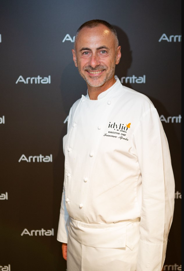 Sopra, l’intervista che Christian D’Antonio di The Way Magazine ha realizzato con lo chef stellato Francesco Apreda, del ristorante Idylio by Apreda a Roma, in occasione di un prestigioso evento a Milano dove Apreda ha cucinato alcuni piatti presenti nel nuovo ricettario “Pairing d’Autore” di Gin Mare direttamente nell’iconica cucina Arrital Nautila, presente e operativa nello showroom di Milano in zona San Babila al piano terra.