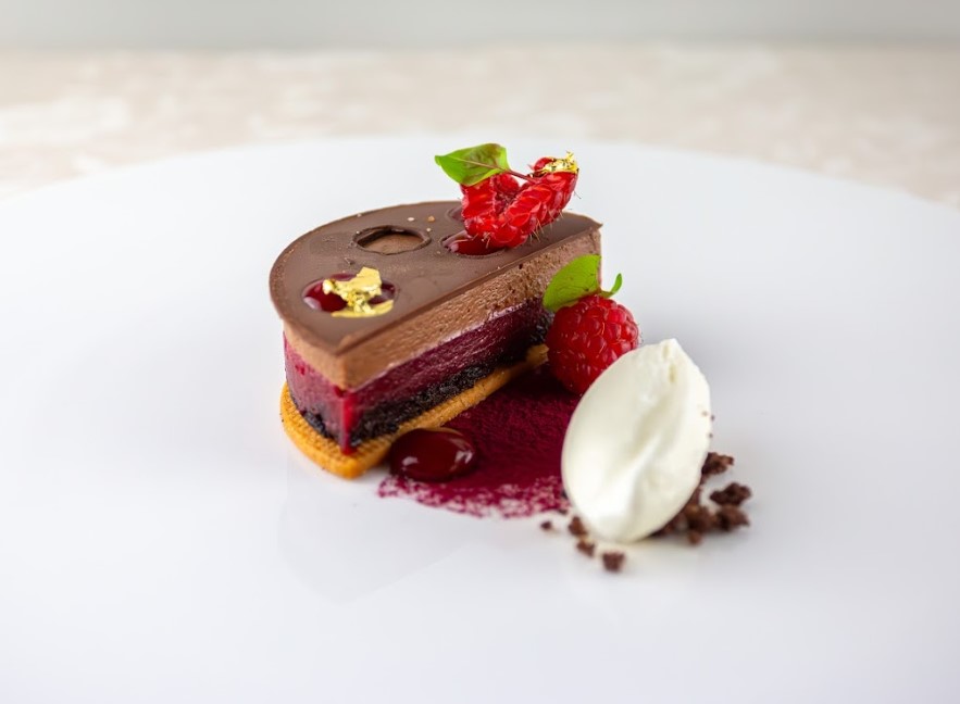 - Sophie Varotto – Le Cattedrali Luxury Relais *L di Asti, Piemonte con il dessert al forno “Torta Bicerin” e quello al piatto “ZZZ” zenzero, zafferano e zabaione.