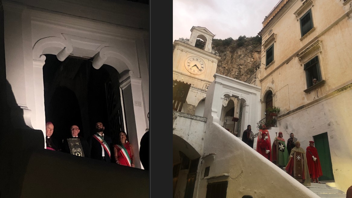 Il Corteo storico dell’Antica Repubblica Marinara è stato aperto dall’esibizione degli “Sbandieratori e Musici città Regia”. L’antica processione ogni anno parte dalla Cattedrale di Sant’Andrea per raggiungere la Chiesa di San Salvatore de’ Birecto ad Atrani dove ha luogo la cerimonia di investitura del Magister di Civiltà Amalfitana alla presenza dell’Arcivescovo. Quest’anno sono stati 100 i figuranti che hanno sfilato in abiti fedelmente ricreati decenni fa sulle testimonianze storiche ritrovate. Si tratta della 24esima edizione del corteo che sfila in sole due occasioni: il capodanno bizantino e per la regata delle repubbliche marinare.