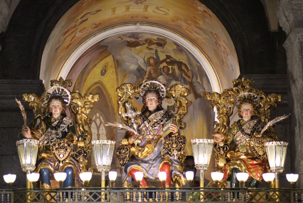 La festa di Sant’Agata il 5 febbraio e il 17 di agosto, a Catania. Una è relativa alla nascita al cielo dell’amata patrona, l’altra alla traslazione del corpo da Costantinopoli alla Sicilia. Non è mai mutata dal 1500 ed è una ricorrenza molto affollata. Il momento clou è la corsa nella salita di San Giuliano che porta alla sede delle suore di clausura nel quartiere del barocco catanese.