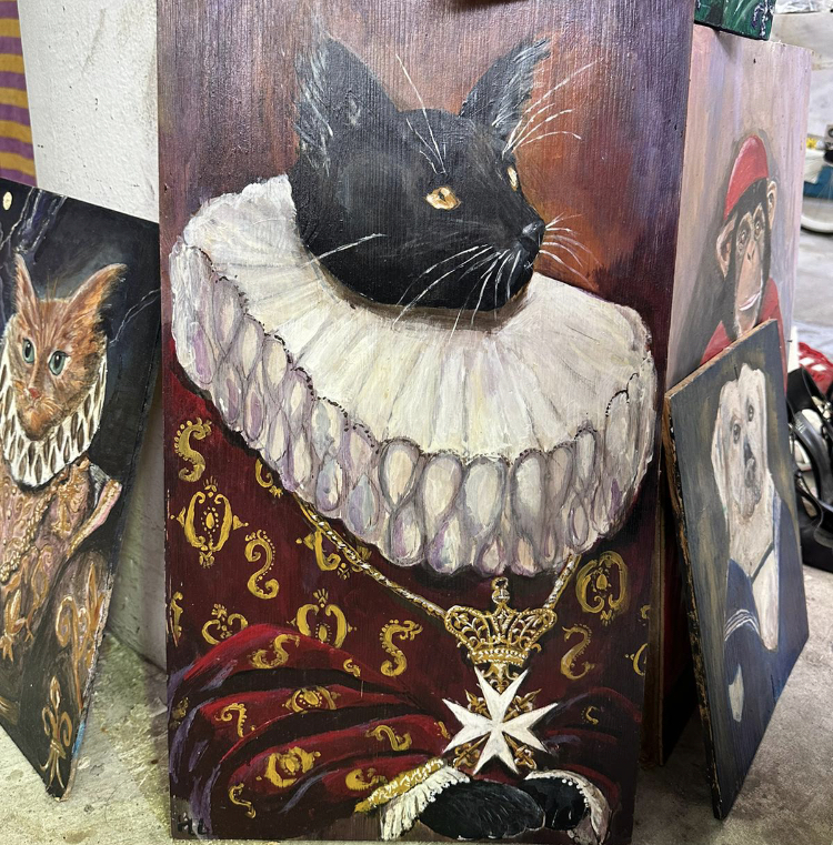 Costretta a casa da una polmonite, come una moderna Frida, nell’immobilità del tempo dedicato alla guarigione, Hélène ha cominciato a dipingere i suoi gatti, ritraendoli con fattezze aristocratiche, agghindati e abbigliati di tutto punto, come piccoli lord. La sua produzione è poi con diversi animali, dipinti richiamando lo stile vittoriano o medievale, fatto di abiti e gioielli pomposi.