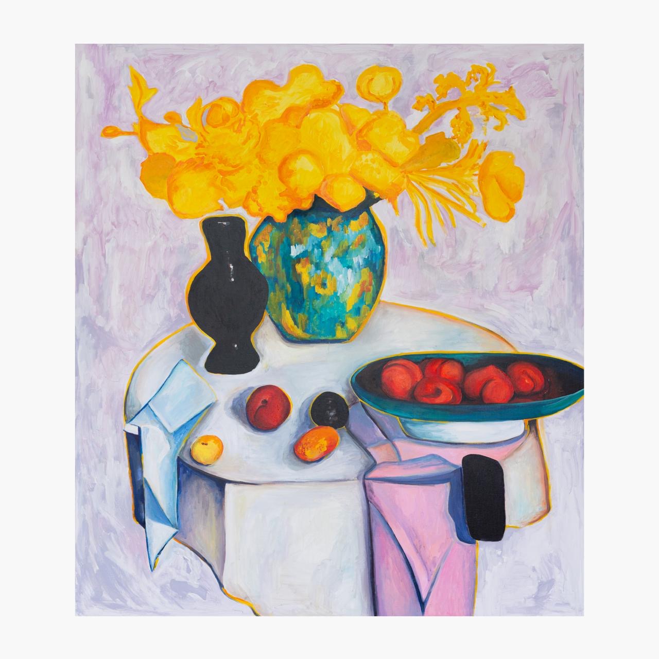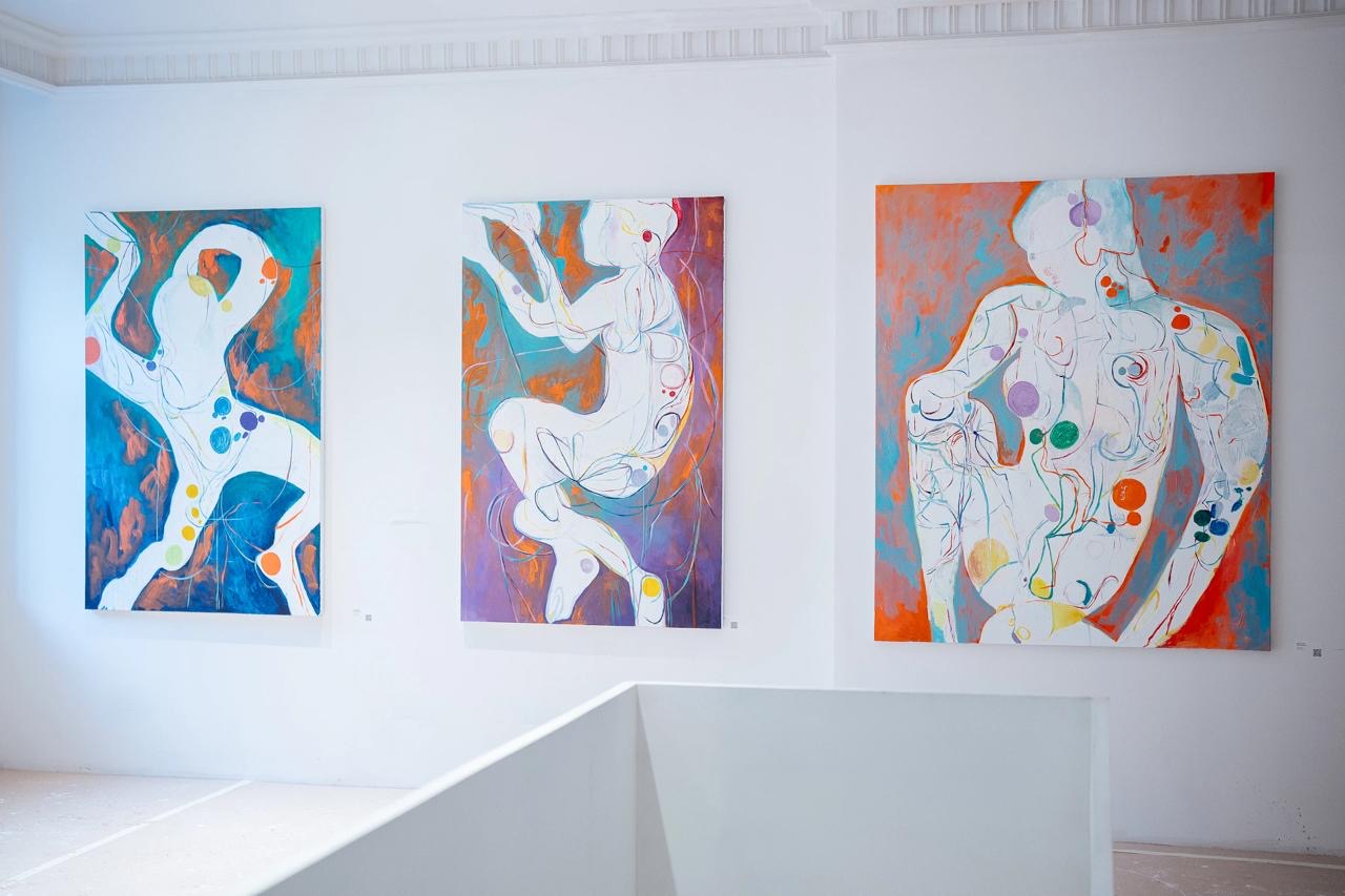 “Le Jardin Céleste”(“Il giardino celeste”) di Katrin Zak è la summa del talento della giovanissima artista Katrin Zak (Mosca 2002) di origini e di formazione russa. Nella mostra parigina Le Jardin Céleste, Zak cerca di indagare il rapporto tra gli uomini e gli spazi vitali in cui interagisce: elementi fitomorfi, ricchi di colori si fondono con altri astratti, dando vita a composizioni che si impongono su più strati. L’aspetto cromatico è determinante per Katrin che rimanda alla mente le opere d’arte di quella schiera d’artisti russi approdati nella capitale francese nei primi decenni del Ventesimo secolo. I colori sono vibranti e diventano sema di sé; a tratti materici, a tratti impalpabili evidenziano linee a volte di contorno alla geometricità di oggetti (come in Diptyque “Discossions” un pastello e acrilico su tela del 2023) o si dissolvono nel bianco del fondo di sinuosi profili umani, in pose plastiche (“Le figure sedute” acrilico su tela del 2024).